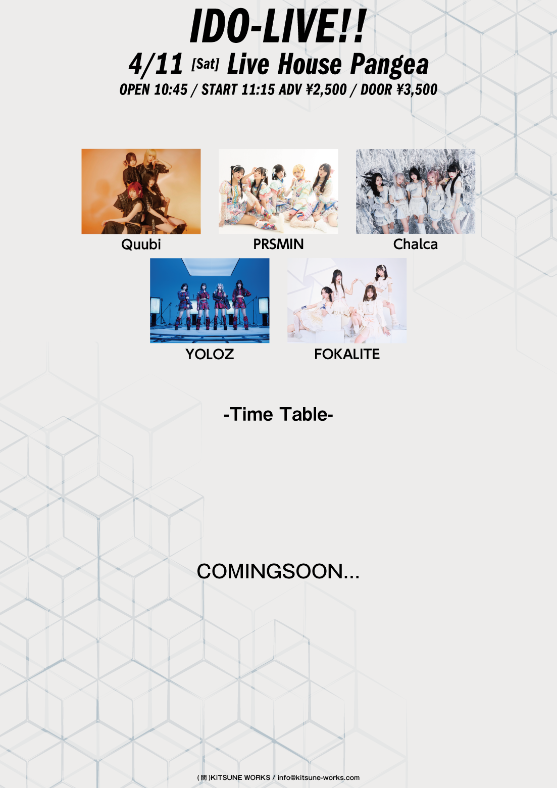 前売り:¥2,500 当日:¥3,500 -